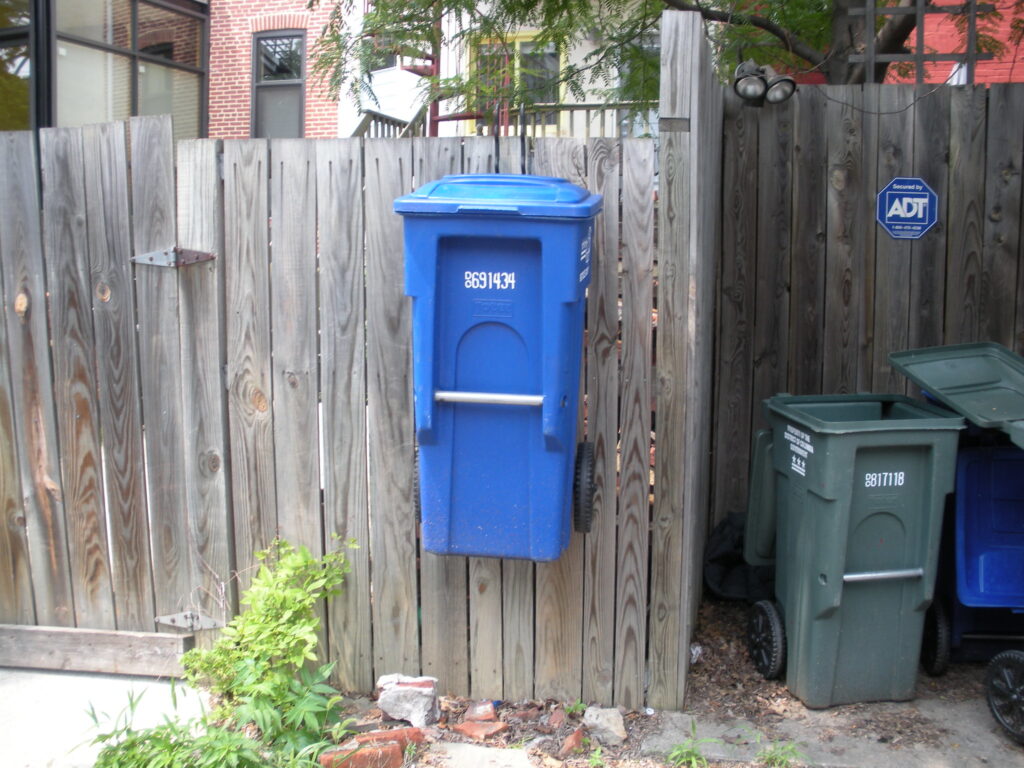 This seems to be making a little extra unnecessary work for oneself, yeah? I guess the idea is so that the recycle can doesn’t wind up half way down the alley but it seems like it’d be a pain in the ass to lift that thing when it’s full and all. Just seemed a bit odd to me. I bet you that is one wicked clean house on the inside though…