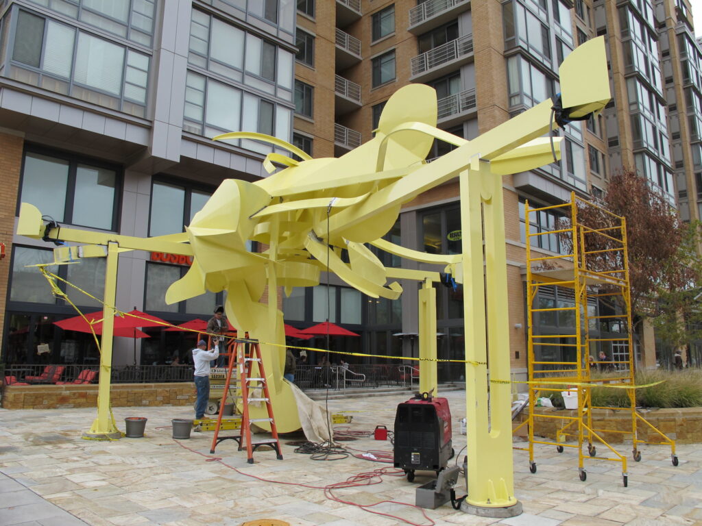 We looked at this sculpture outside the City Visa Busboys & Poets last week. But as promised I wanted to show some daytime photos of it. When I stopped by there was still a bit of work going on. But I gotta agree with some original comments, I’m not sure I’m feeling this one. I’ll be very curious to check it out when it’s completely finished.