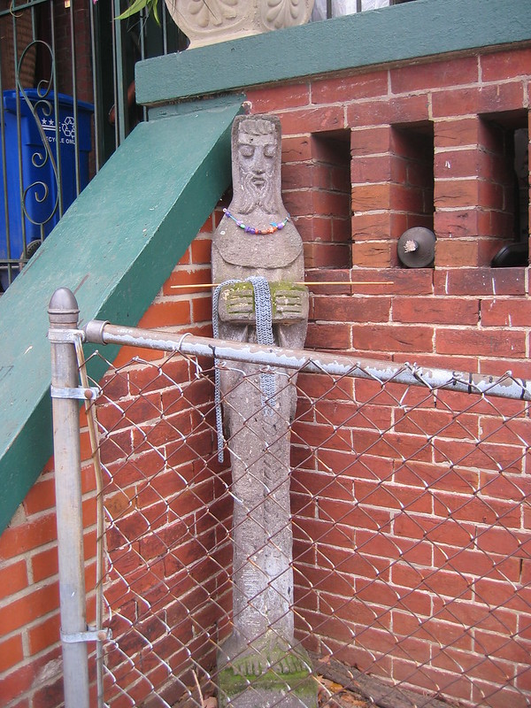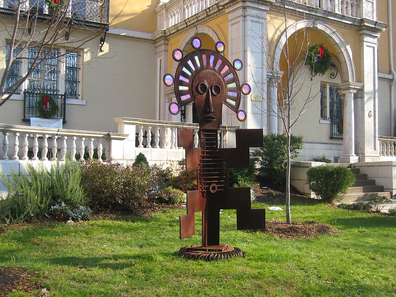 I was absolutely stunned to encounter this lawn jockey on my walk about this past weekend. I didn’t just take a double take, I took a quadruple take. Then I slapped my face a few times and looked again. Indeed, I thought I may have been transported back decades. I thought for sure this must have been one of the most racist things I’ve ever encountered in DC. But maybe I was wrong. I did a little research when I got back home and apparently back in the Underground Railroad days these lawn jockeys used to signify a safe place. Sometimes those supporting the Underground railroad would tie a a green string around the wrist to signify a safe place. You can read more about the history at this Web site or here at the Wikipedia entry.