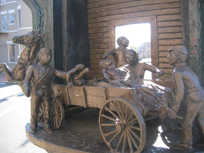 This is one of those old fire alarm pull boxes that has been converted into a sculpture. I’ve seen many of these alarm boxes converted into paintings but this is the first sculpture I’ve seen. This one is located in Mt. Pleasant and apparently is showing some troops being taken to the old Mt. Pleasant Hospital. Really an amazing conversion, no? Check out another picture after the jump. (more…)