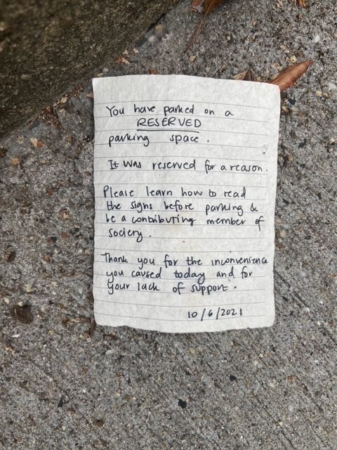 Kyle sends this beaut from Columbia Heights. At least this is the last week for street sweeping.