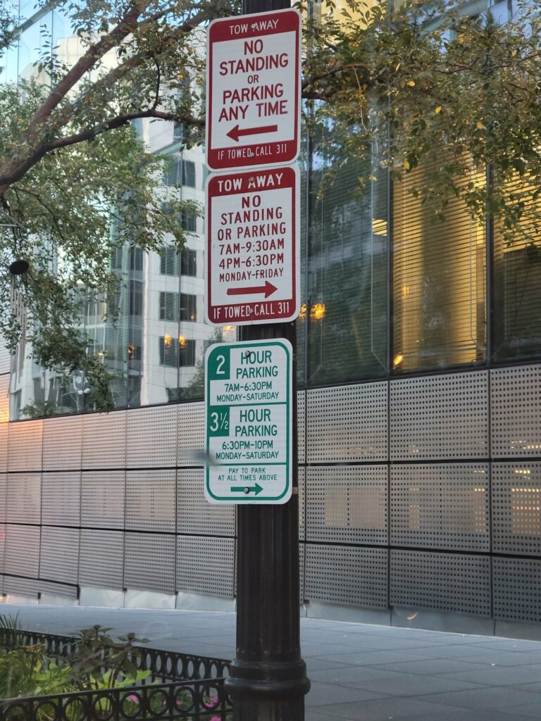 Having seen some early reaction, while most agree that the signage is confusing, let me just say that yes, when you take a moment the signs are obviously decipherable but the point is that the 7am on the green sign for 5 of those days that you are in fact not allowed to park there is unnecessarily deceiving at first glance. OK, let’s argue about it anyway :)