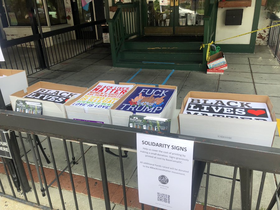 Thanks to Abby for sending: “JRs on 17th [1519 17th St NW] has boxes of solidarity signs out for grabs! Small donation requested for those who can!” (more…)