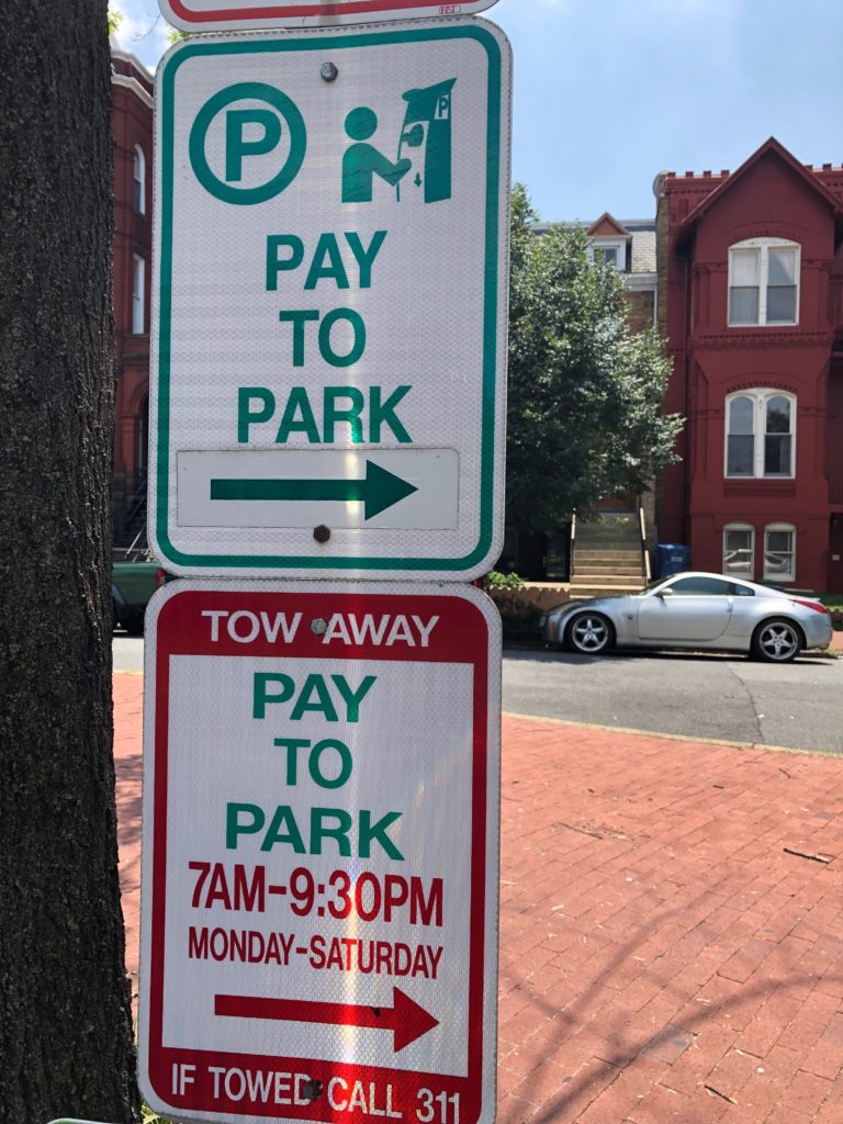 Help me out with this one. Top sign, makes complete sense. Second sign… still with you there. Third sign… trumps all above signs when it pertains to the right of the sign? I sat at this sign for a good minute trying to figure out if I could park there. Then I realized that’s what they wanted from me. Not today, DC, not today.”