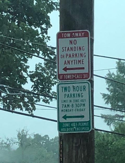 Got a ticket the other day parked on this side of the road, Wednesday at 10:22 A.M. Had to think about this one for awhile but to me, this sign means no parking from Wednesday at 9:30 P.M. to Thursday at 11:30 A.M. However, after the ticket, I believe this sign is misprinted and should say A.M. instead of P.M. (more…)