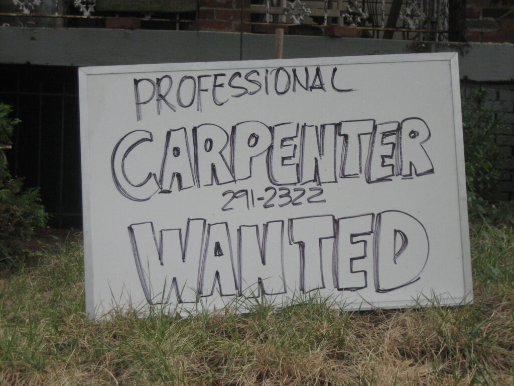 I thought this was interesting. The sign was posted in someone’s front yard. Anyone think this is a good approach? I don’t know if I’d want all sorts of people just knocking on my door saying, yeah I’m a professional carpenter…