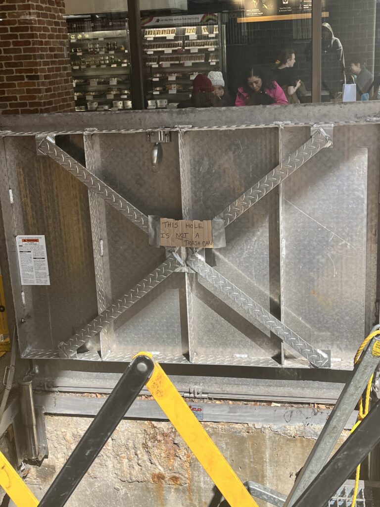 Thanks to Jaymie for sending: “Farragut west metro station, “this hole is not a trash can.”