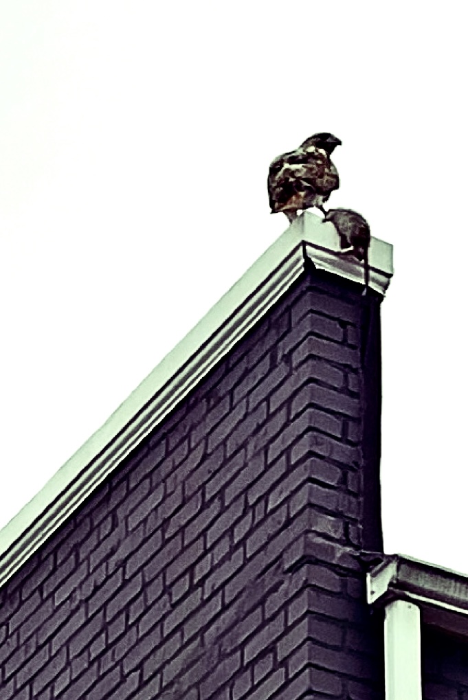 Thanks to Rachel for sending: “I took this (slightly out of focus) shot of a hawk with what I think is a small possum. He’s sitting on the top of a house in Brightwood.”