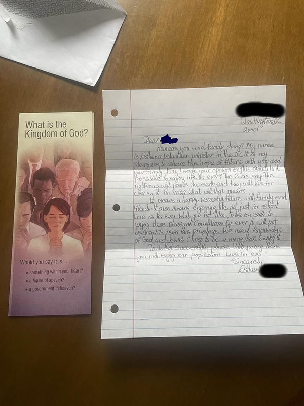 I received a handwritten letter apparently from DC Jehovas Witness trying to recruit me. Curious if other people are receiving these too? (more…)
