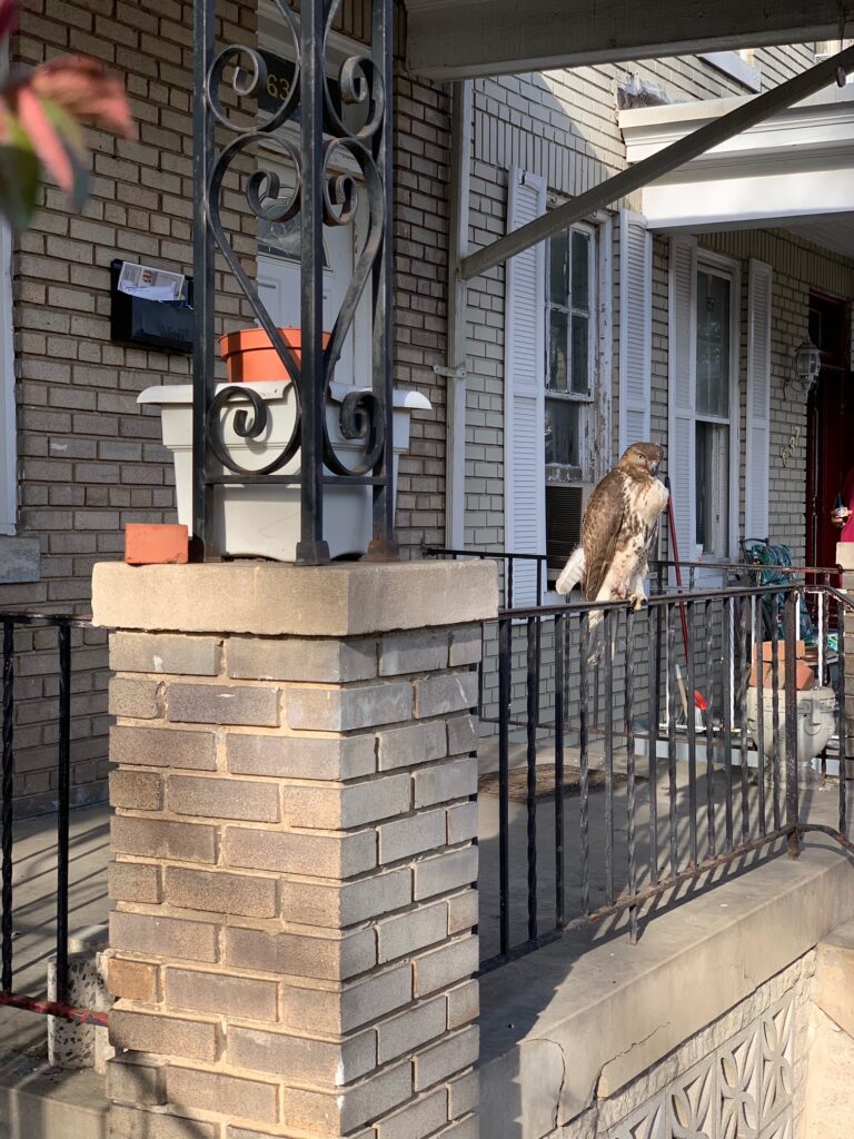 Thanks to Kristin for sending: “We have a hawk friend on Columbia Rd NW. This pic is from over the weekend, he likes to eat rats and then rest and digest. Happy Thursday!”