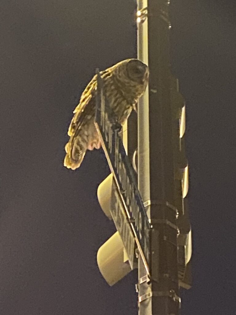Thanks to Rik for sharing from New Hampshire and Monroe Street, NW: “saw an owl last night, everyone say hello”