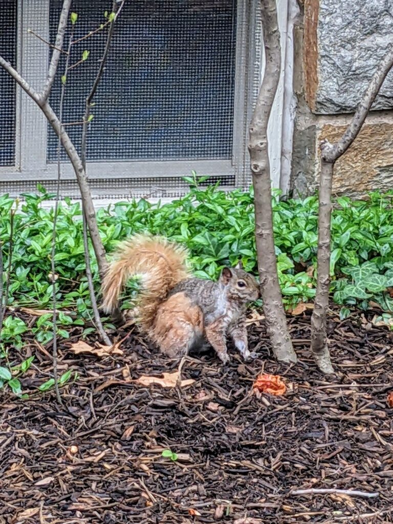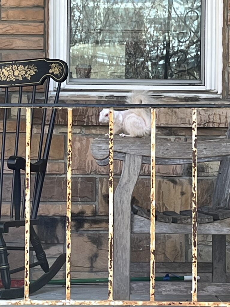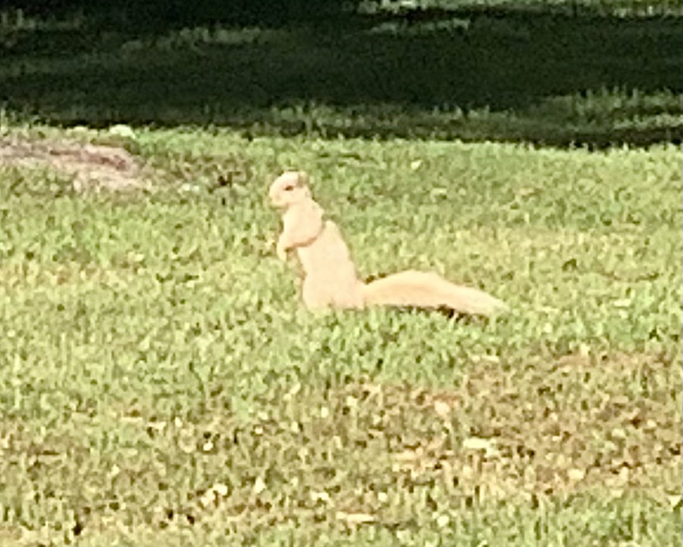 Thanks to Sharon for sending from Kyle, Texas: “This squirrel was with other (brown) squirrels in a neighbors yard.”
