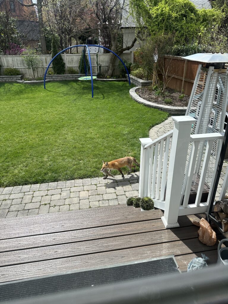 Thanks to Matthew for sending from Clarendon: “This handsome, large fellow took down two squirrels and a rabbit in our backyard and buried the leftovers in the landscaping for later.”