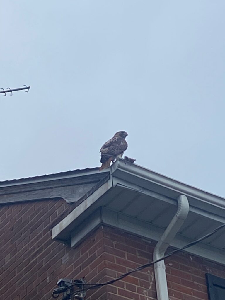Thanks to Kate for sending: “This hawk landed on my neighbor’s roof in Brightwood with a freshly-caught rat. Thank you, hawk!”