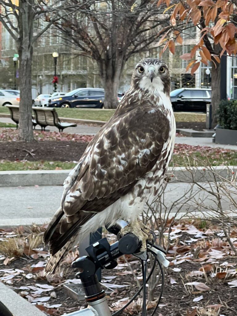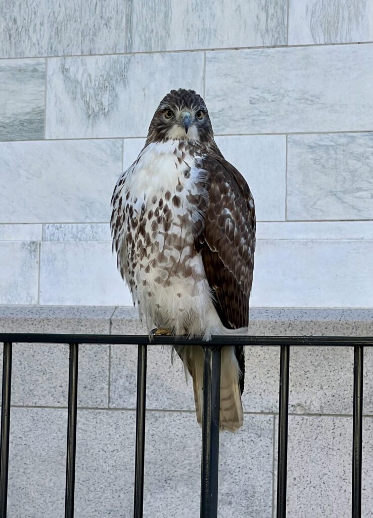 Thanks to Soni for sharing this beaut: “My coworker got really really close to a red tailed hawk today! Surprisingly didn’t fly away or attack her. So pretty.”