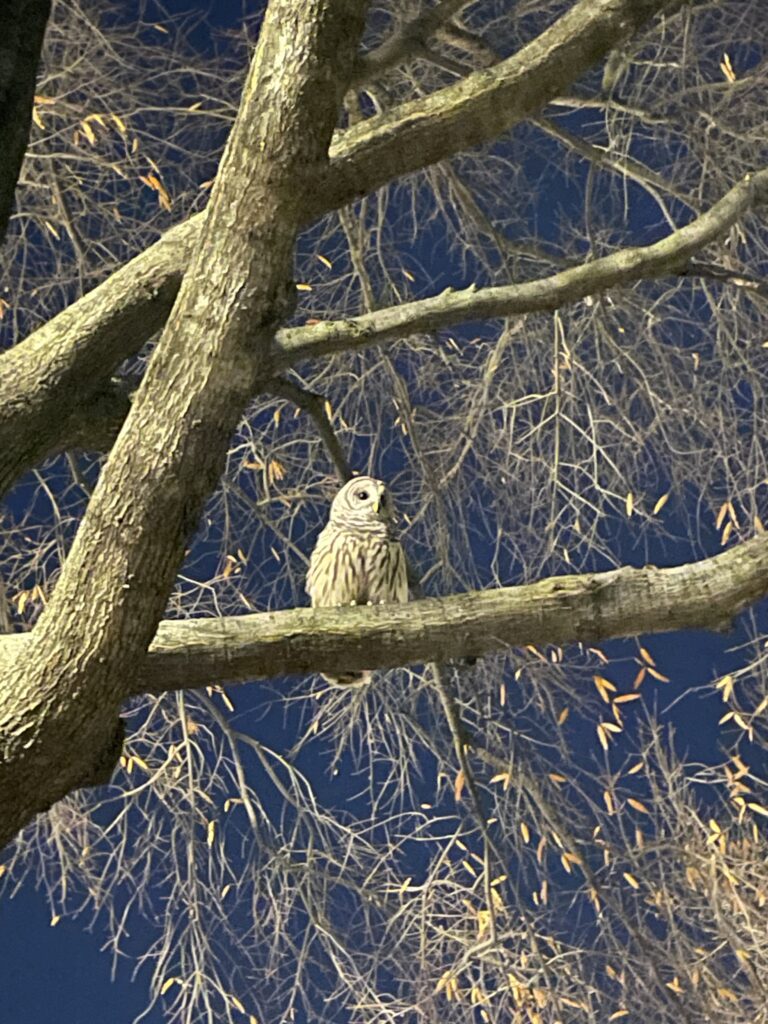 Thanks to Emily for sending from Capitol Hill: “Spotted this beauty of a barred owl hunting in Seward Square.”
