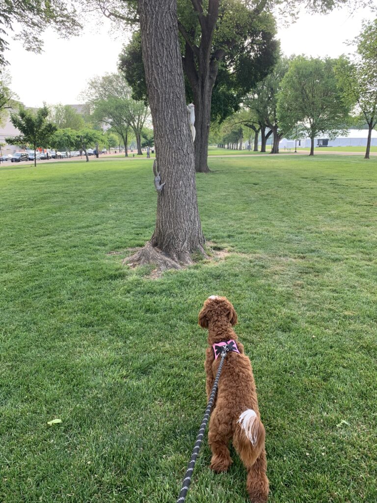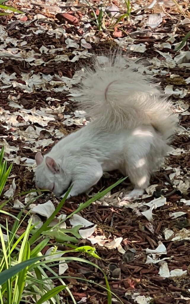 Thanks to Connor for sending: “Two white squirrels live on of one north tree lines section of the national mall.”