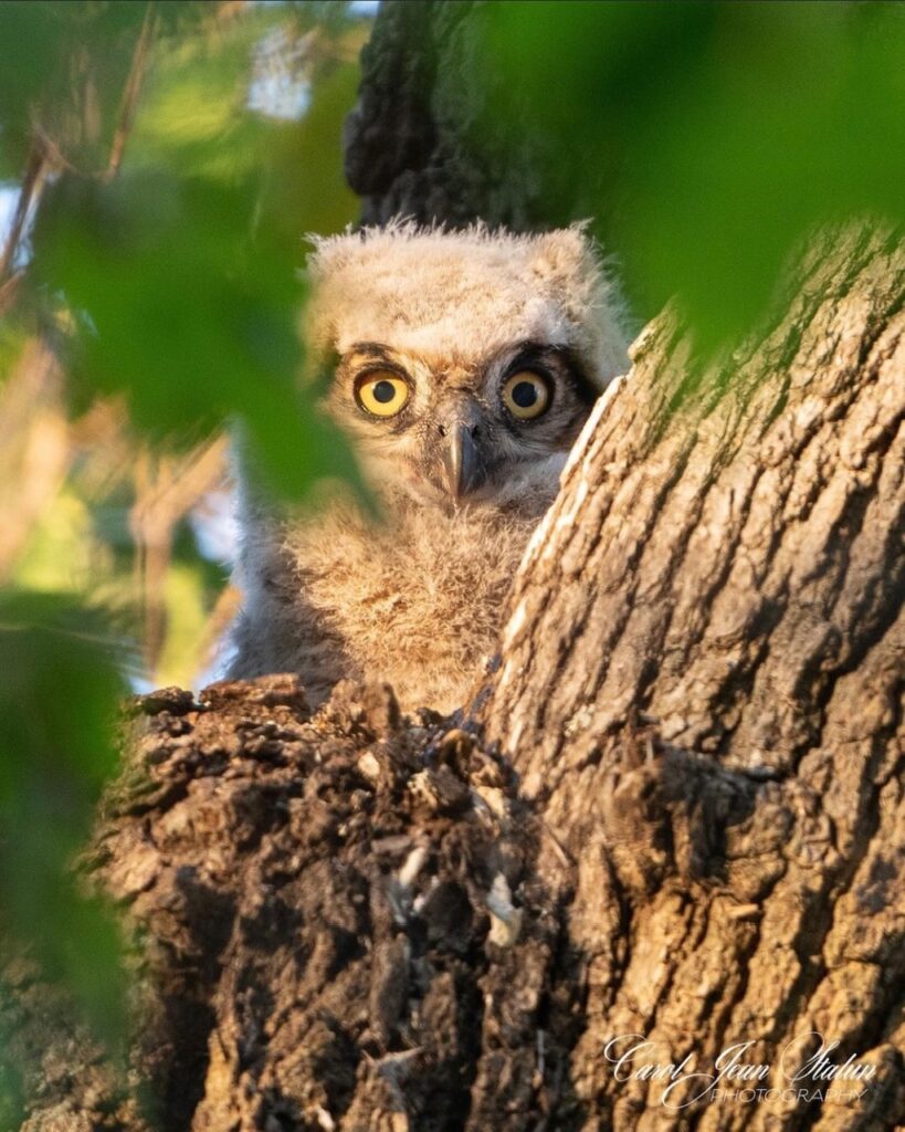 Thanks to Carol for sharing another great hawk*** photo. This Great Horned Owlet is magnificent.