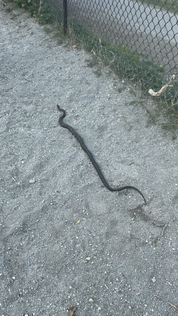 Thanks to Abby for sending from Adams Morgan: “Huge snake (water snake?? who can identify) inside the dog park at Walter Pierce Park”