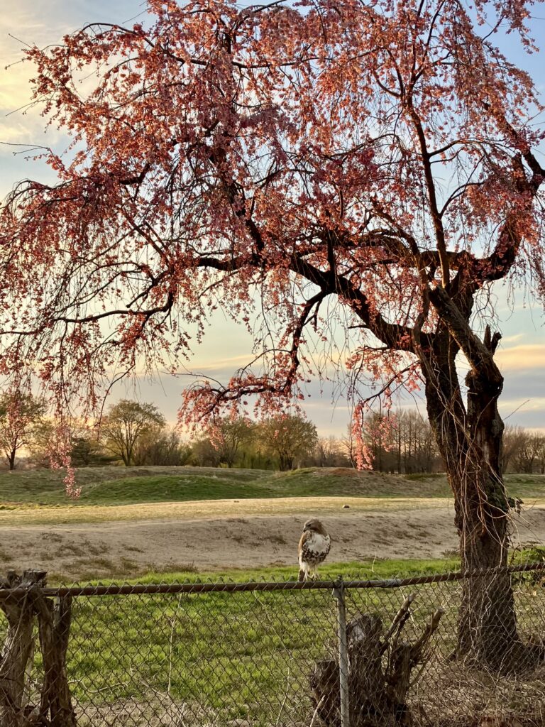 Thanks to Agnes for sending: “Biking around Hains Point and spotted this hawk enjoying the cherry blossoms during golden hour.”