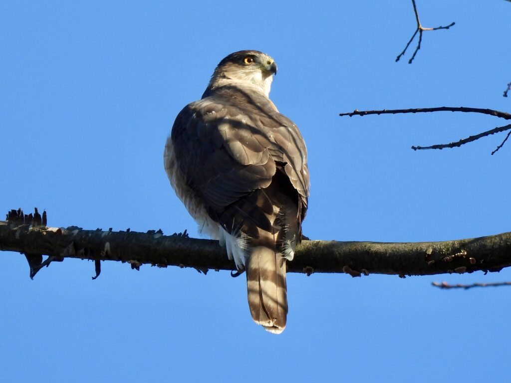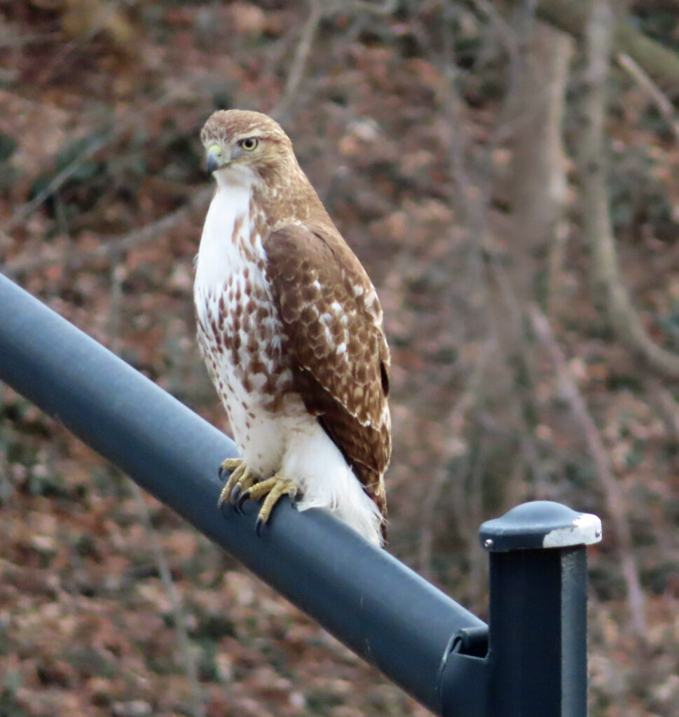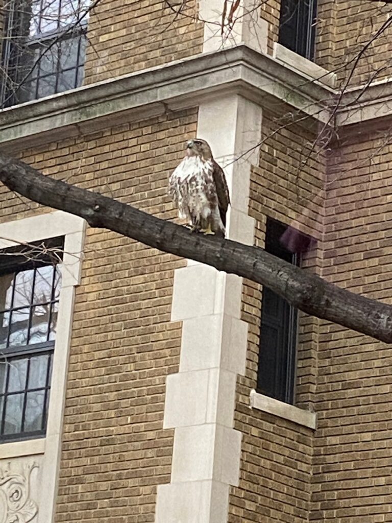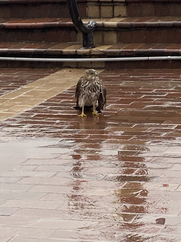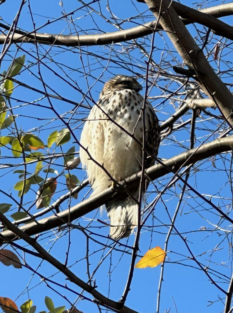 Thanks to Caroline for sending the awesome closeup above: “Cooper’s Hawk on the look out for a bite to eat at Montrose Park!”