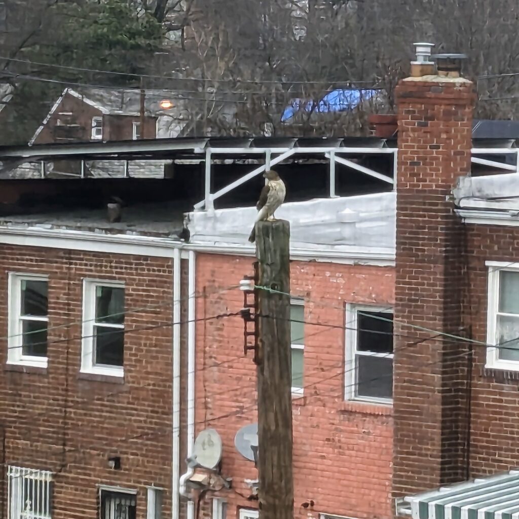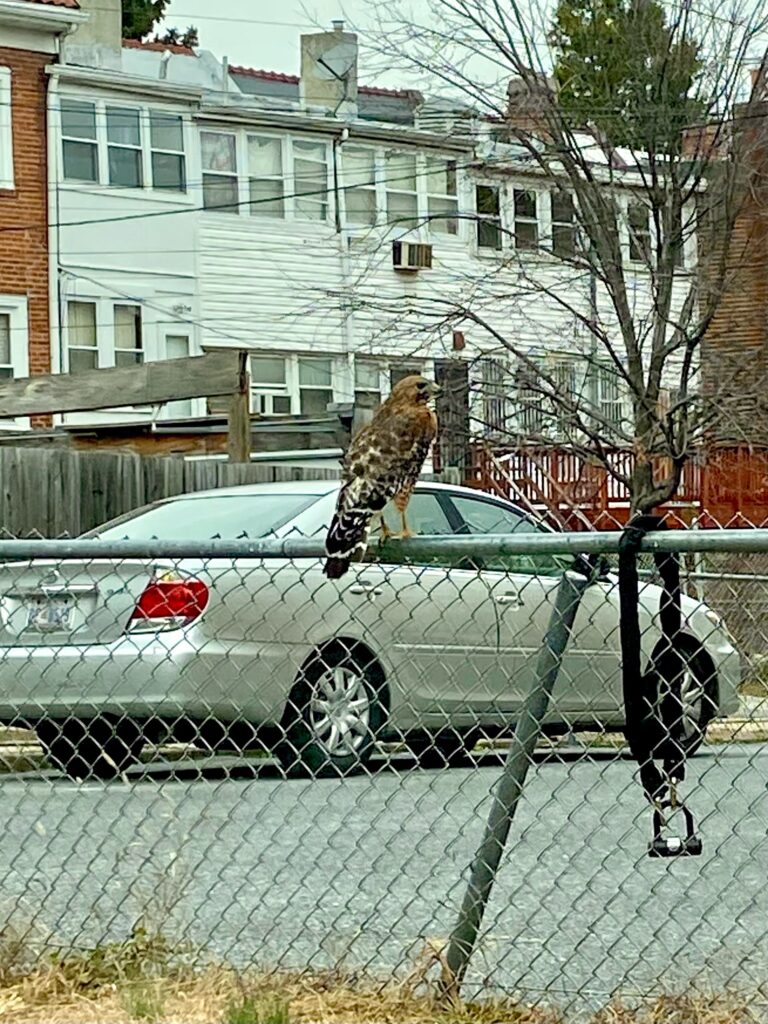 Thanks to Elisabeth for sending from Columbia Heights: “Sadly (?) it dropped the huge dead rat it was carrying before I could take the picture.”