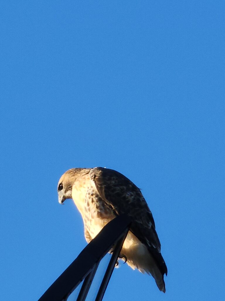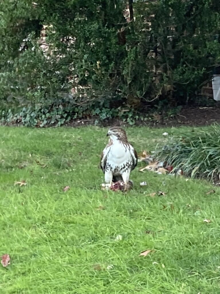 “I saw this hawk a couple of weeks ago in Mc Lean gardens, on my way to work. It was feasting on a rabbit. It was unbothered by me being so close. After I started walking again to resume my walk to work, if actually flew away and followed me, landed right by me again. So I stopped again to watch it eat. It was a strange, but beautiful experience.”