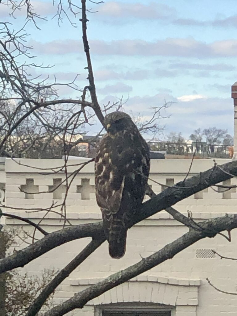 “Spotted in NW DC, a juvenile Cooper’s hawk! Notice my cat in the bottom right, they were both hunting each other for a solid minute. Was pretty intimidating!