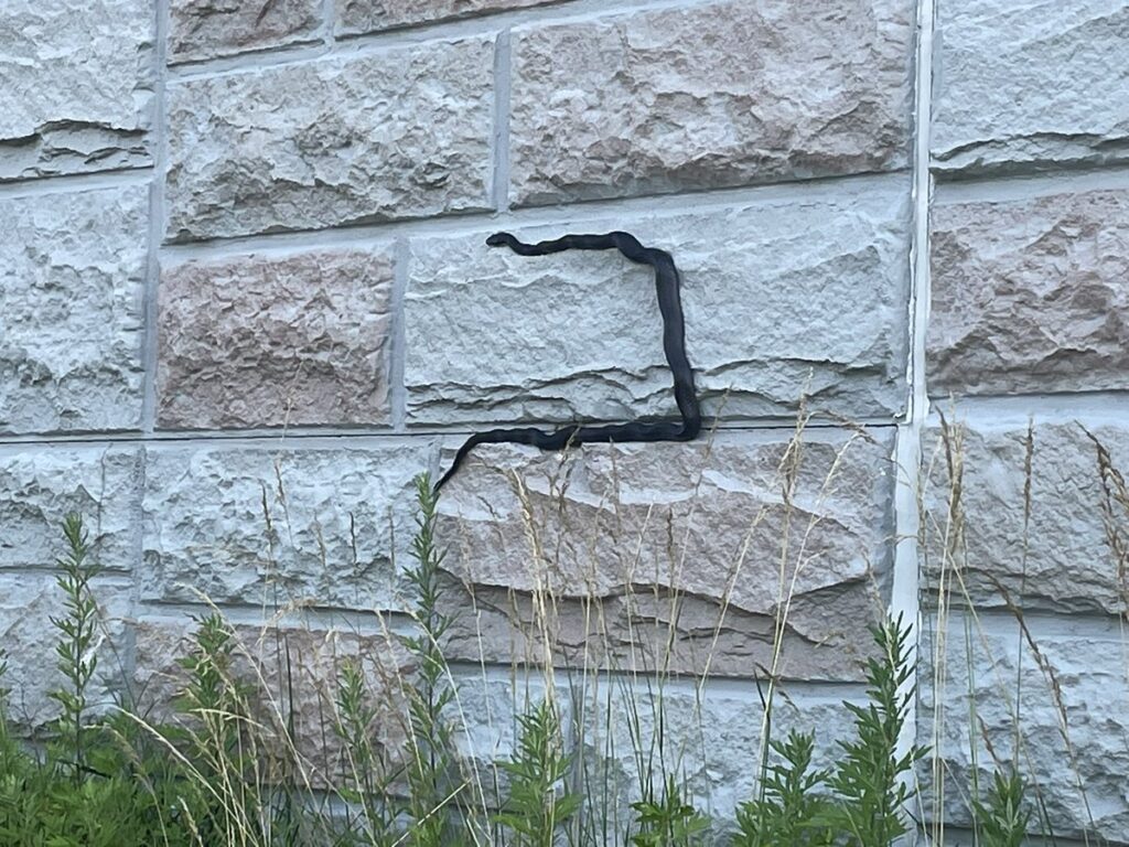 Thanks to Jarad for sharing: “snake spotted in DC on the wall of the 11th street bridge. Yes, literally on the side of the wall defying gravity!”