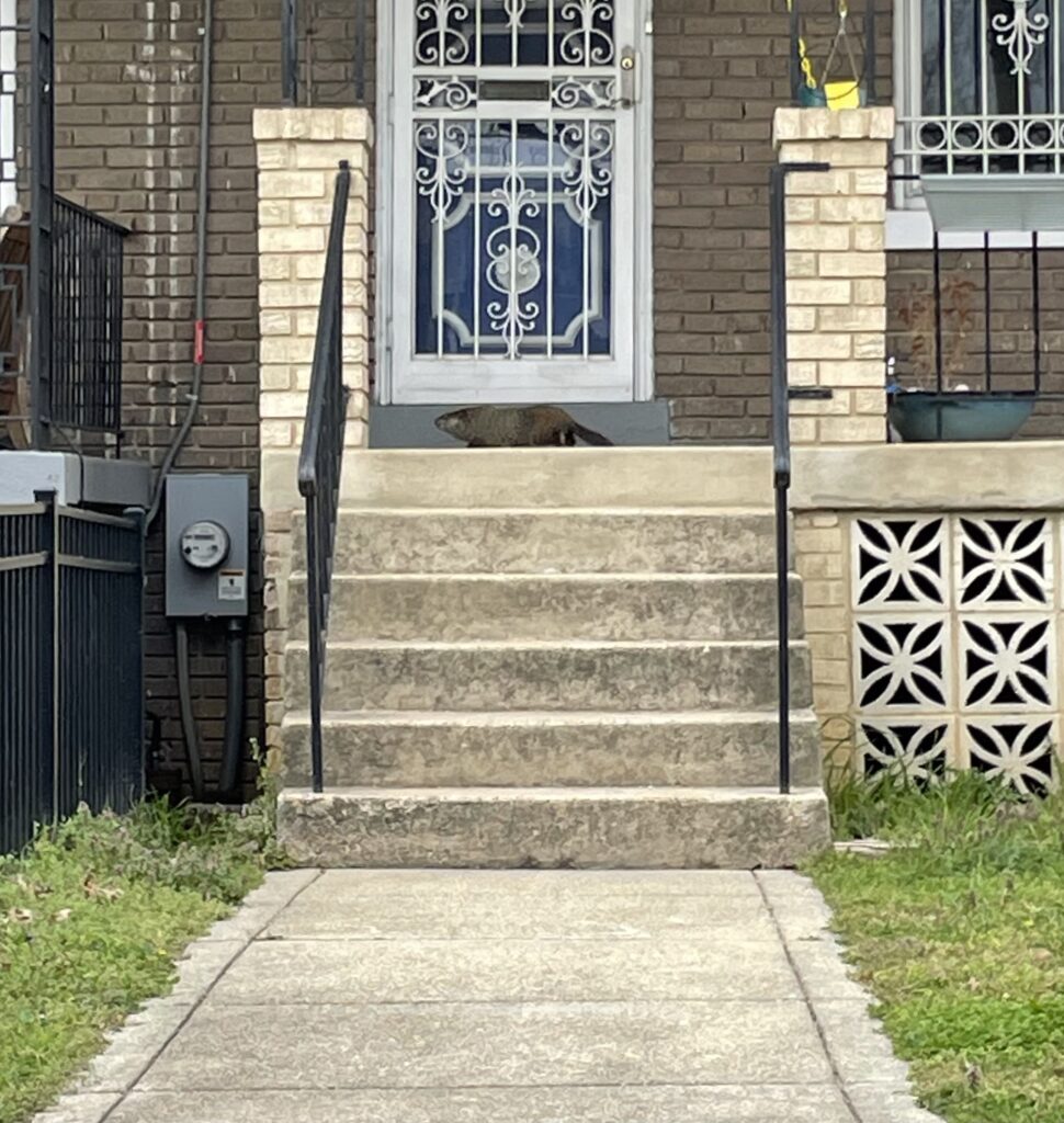 Thanks to Verena for sending from Georgetown: “First thing in the morning – met a wild turkey in my backyard.”
