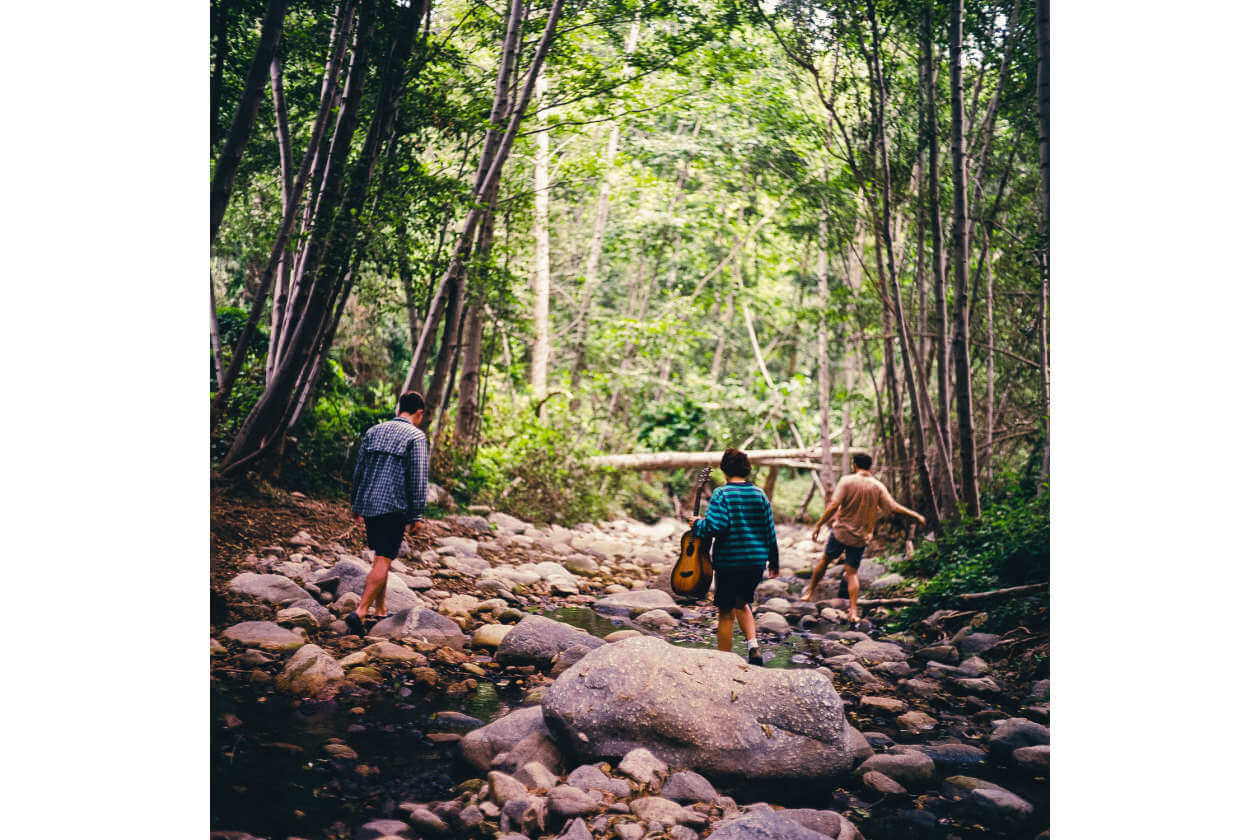 Hailing from the Hudson Valley and the DMV, Kid Again is a long way from home in Los Angeles, where they’re now based. Mike, kt, and Theo met in college and formed a band called the Electricians, then left music behind and spent five years in different corners of the world. Magically, they all gathered in LA in 2024 to form Kid Again. Their indie folk / alt rock album came out earlier this year: a ten-track, self-produced labor of love recorded in backyards and bedrooms around LA.