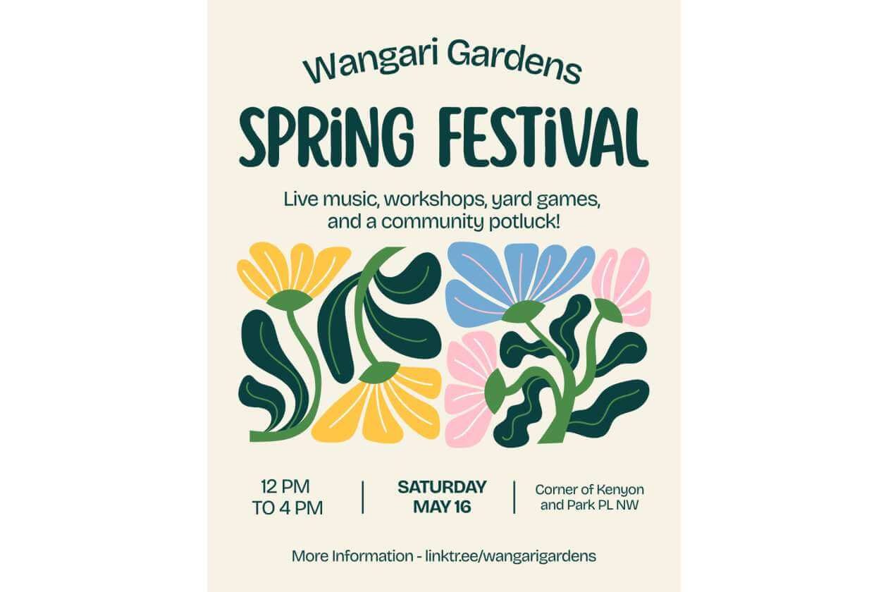 Come join your neighbors at the annual Wangari Gardens Spring Festival on May 16 from 12pm–4pm! See our garden and enjoy the music, workshops, yard games, and community potluck!