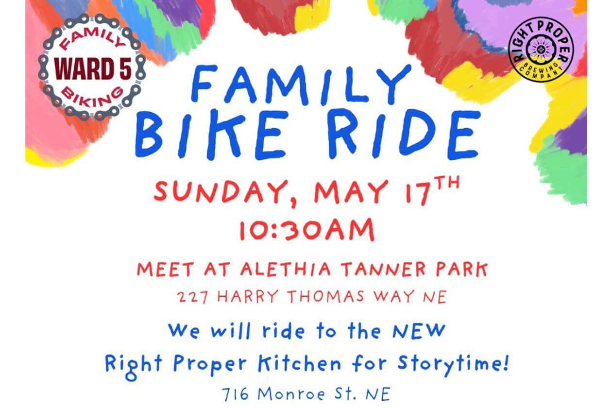 Join us May 17th at 10:30am at Alethia Tanner Park for a fully-marshalled, police-escorted, family-friendly ride to the brand new Right Proper Kitchen for storytime!