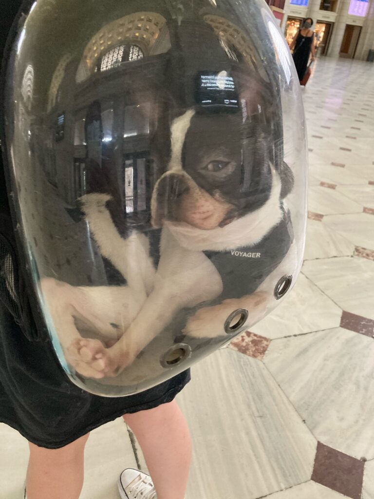 *Not today, not a corgi. This series features any pets in a backpack/bag/vessel. On metro, or not. Corgi, or not, and often NOT a corgi but the series starting with corgis and I can be obstinate…send your finds to [email protected]