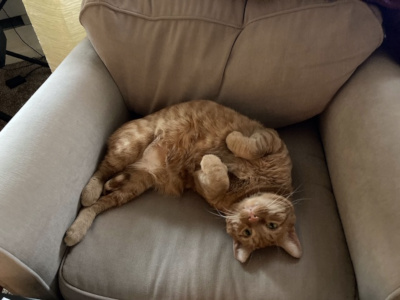 Mango is about 2 years old and he showed up as a scrawny kitten to a friendly home that fed outdoor ferals. The nice lady fed him for several months before contacting us when the pandemic hit. He must have had a family before because he is so people friendly but no one claimed him so we took him in and got him neutered and shots. He’s a chill kitty and very laid back. He does very well with other cats but probably not dogs. He has many cute poses and is quite photogenic. He loves meal time and makes sure he never misses a meal. And he likes to sleep on the bed and sit on your lap if you’re in need of some good company. To learn more, contact Tails High Cats.
