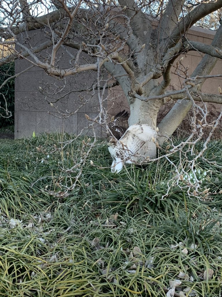 On a walk this weekend I noticed a copper looking tag/plaque way up high in the tall tree in the triangle park at Mass Ave/35th St NW/Fulton St NW, just south of St Sophia’s. I’ve walked by here many, many times before and never noticed it, but the sun was hitting at just the right angle for it to flash in the corner of my eye. I thought at first it was a mylar balloon or something similar caught in the branches, but getting as close as I could it’s obviously a large metal tag or plate of some sort (about license plate size?) zip-tied to one of the boughs. (more…)