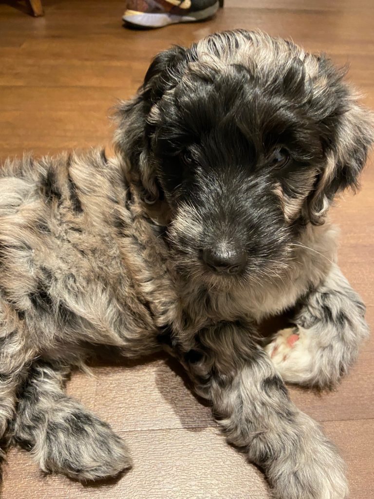 “This is Snickers, our 10 week old miniature golden doodle. He lives in NoMa and he says stay safe all!”