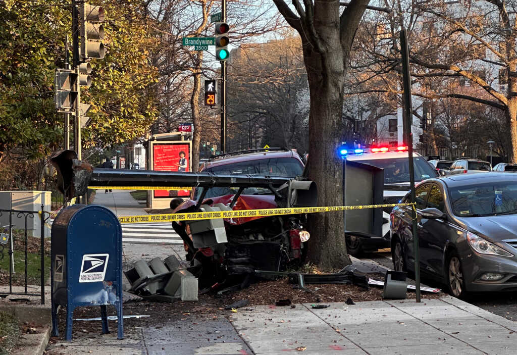 Yesterday there was a bashed up car in the early morning hours at 36th st NW and Davenport St NW. This morning’s crash took out a light pole at Connecticut Ave NW and Brandywine St NW. Front windshield intact but back glass gone – (more…)