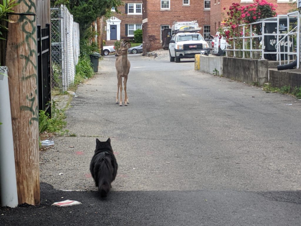 Thanks to Terra for sending from “an alley near the Georgia Ave/Petworth Metro station. Even the cat is surprised!”