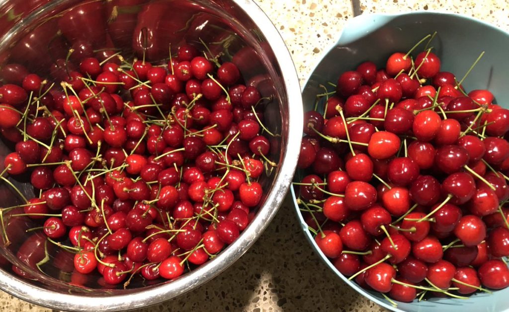 Thanks to Dan for sending: “Park View cherry picking season in full swing. Bowl on left from 2 days ago (after eating lots/giving a bunch away). Bowl on right from this evening.”
