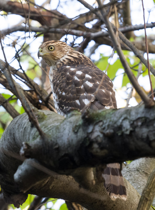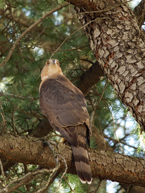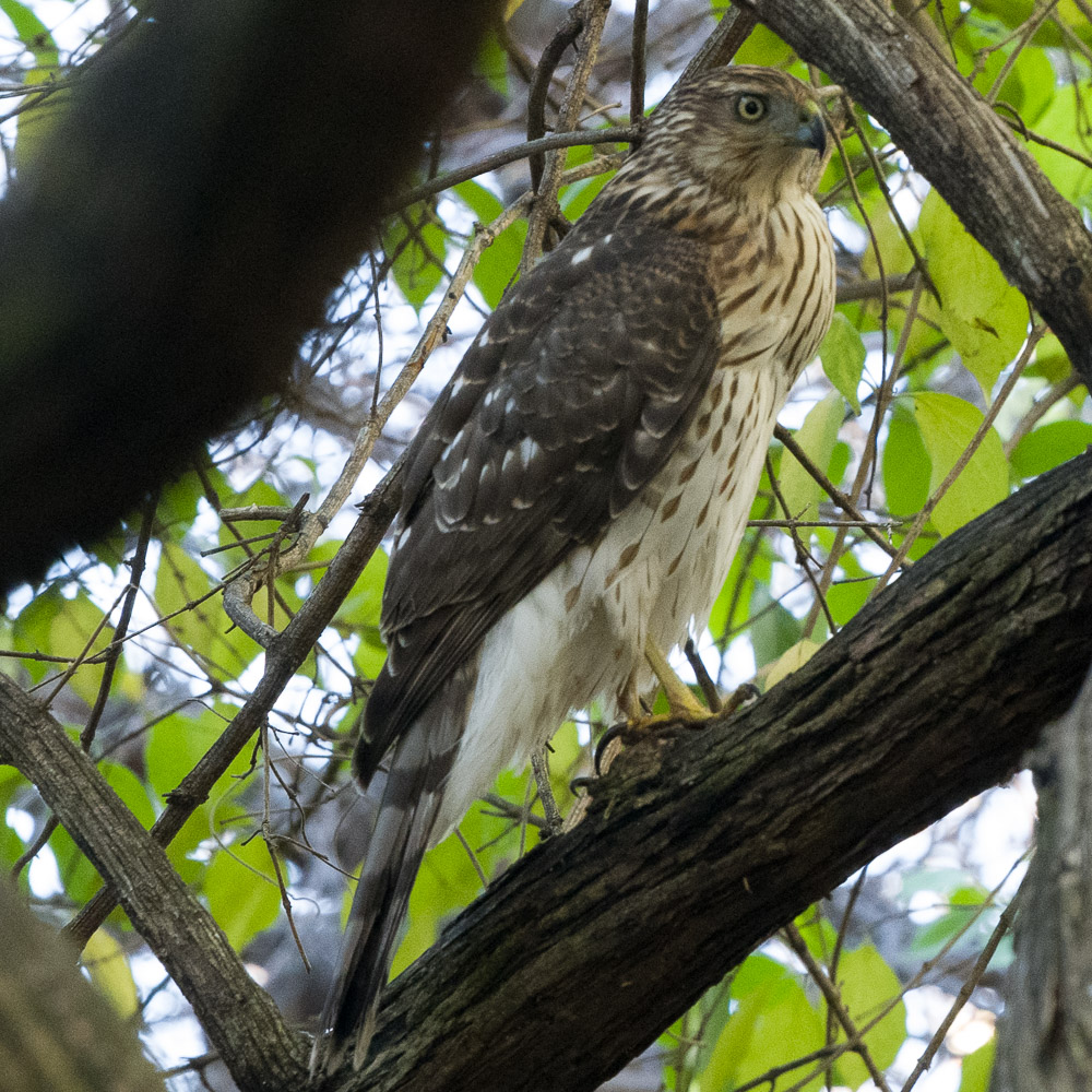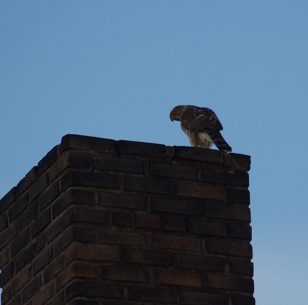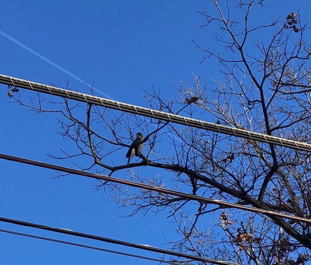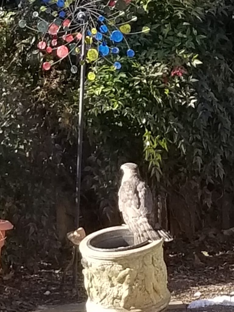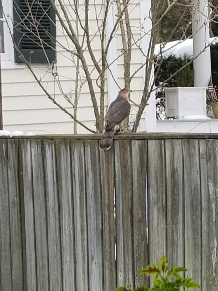 “My yard must be a regular stop for this hawk, probably because we have bird feeders and the hawk was looking for a meal.”