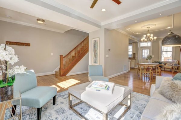 A walk out roof deck with ironwood decking and steel railings provides extra outdoor space. This Victorian bayfront rowhouse sits on the high ground of a one way street w/a bike lane close to the best of H Street. Secure off street parking.
